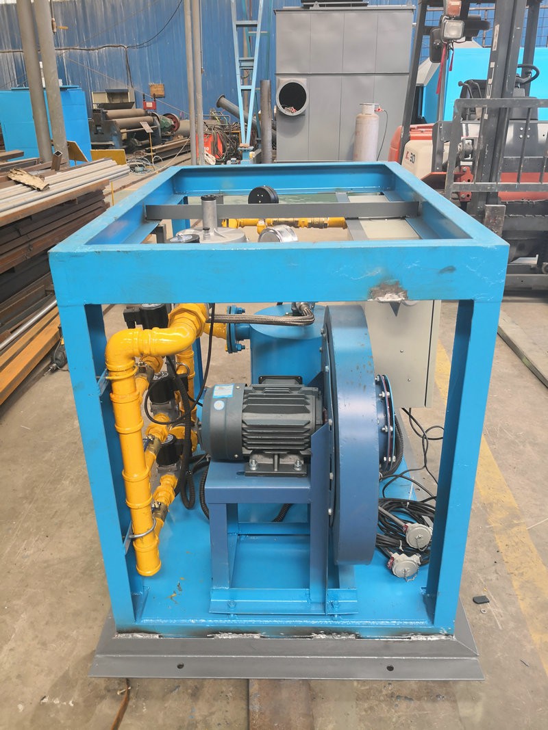 中間包烘烤器:包括燃燒器、鼓風(fēng)機(jī)、助燃風(fēng)管道系統(tǒng)和煤氣管道系統(tǒng),所述助燃風(fēng)管道系統(tǒng)一端連接鼓風(fēng)機(jī),另一端接入位于燃燒器前的煤氣管道系統(tǒng),還包括通過控制煤氣管道閥門開閉自動(dòng)調(diào)節(jié)溫度的控制系統(tǒng),所述燃燒器為1-5個(gè)(根據(jù)膜胎尺寸確定),中間包工作層受熱均勻,易脫模節(jié)能效果明顯。